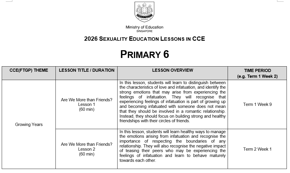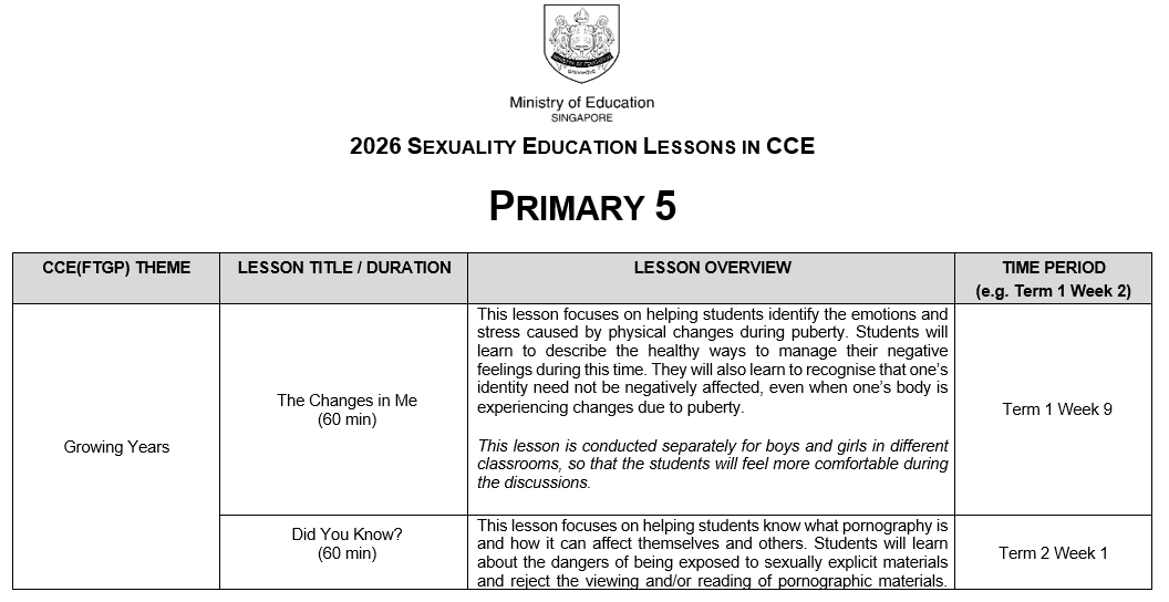 You may click here for more information on MOE Sexuality Education.